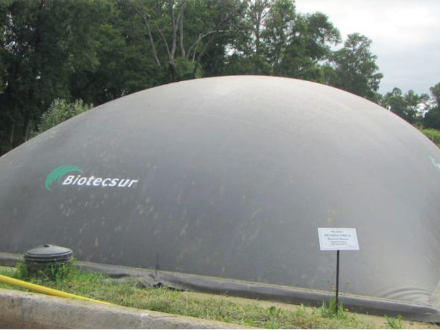 Planta de biogás para el tratamiento de suero de leche ubicado en la localidad de Purranque, Los Lagos. Gasómetro con capacidad de 210 m3 de biogás. Proyecto propiedad de Lacteos y Energía de Schwager. |